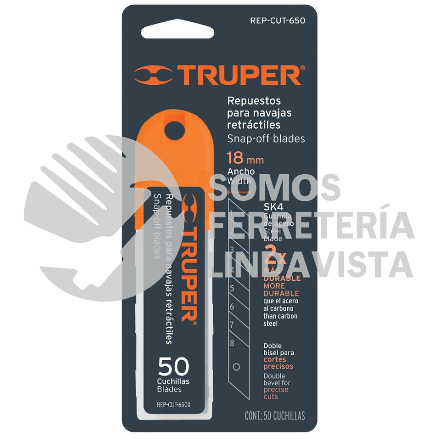 100101 REP-CUT-650 ESTUCHE CON 50 CUCHILLAS SK4 DE 18 MM PARA CUTTER TRUPER