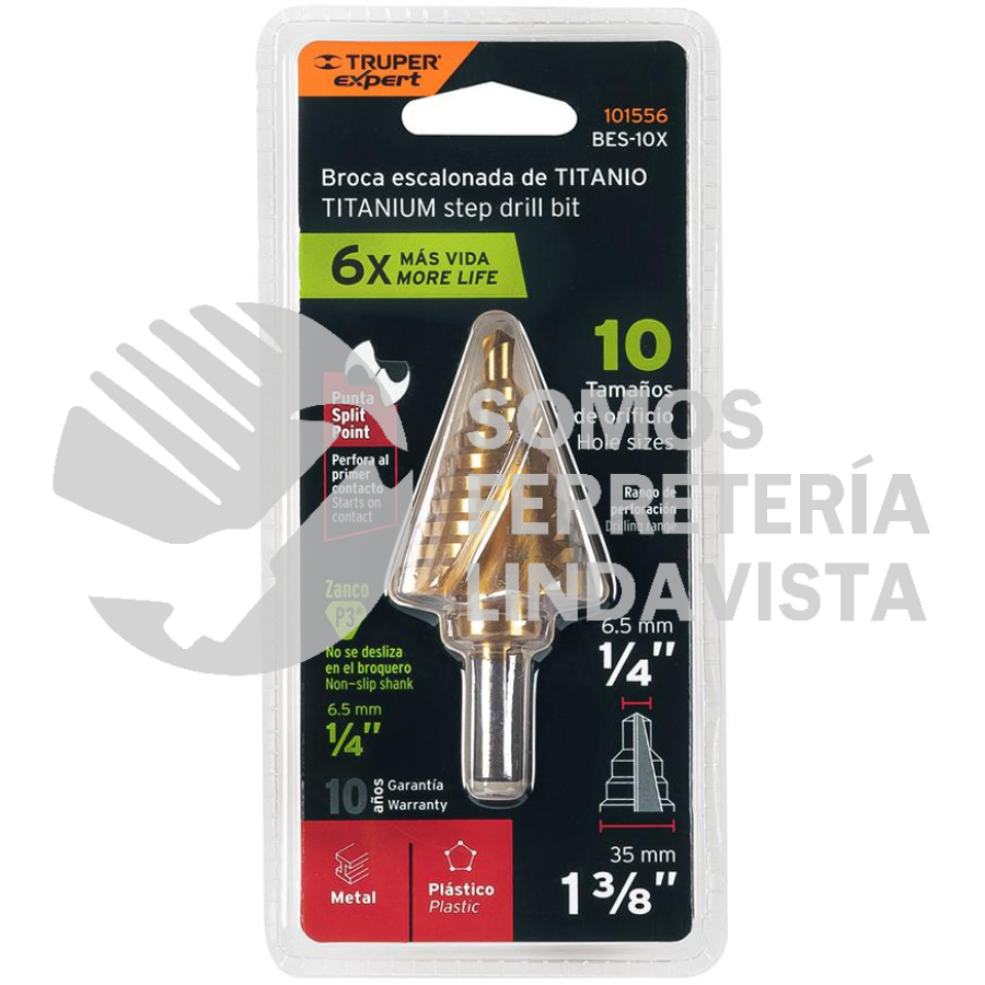 101556 BES-10X BROCA ESCALONADA TITANIO 10 ESCALONES 1/4" A 1-3/8" TRUPER