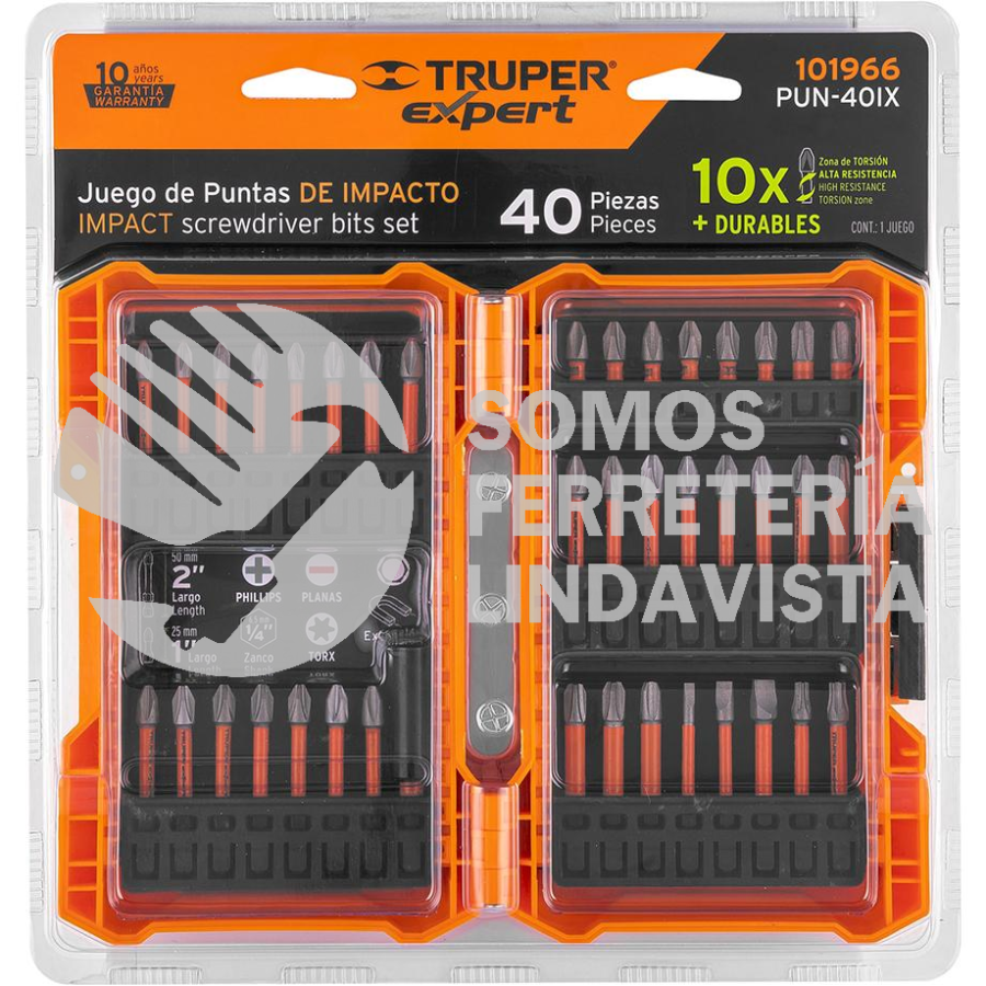 101966 PUN-40IX JUEGO DE 40 PUNTAS DE IMPACTO MIXTAS LARGOS 1" Y 2" TRUPER