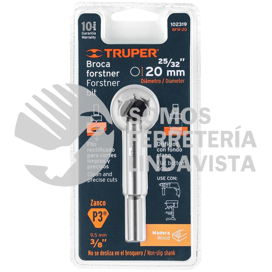 102319 BFM-20 BROCA FORSTNER 20 MM PARA MADERA TRUPER