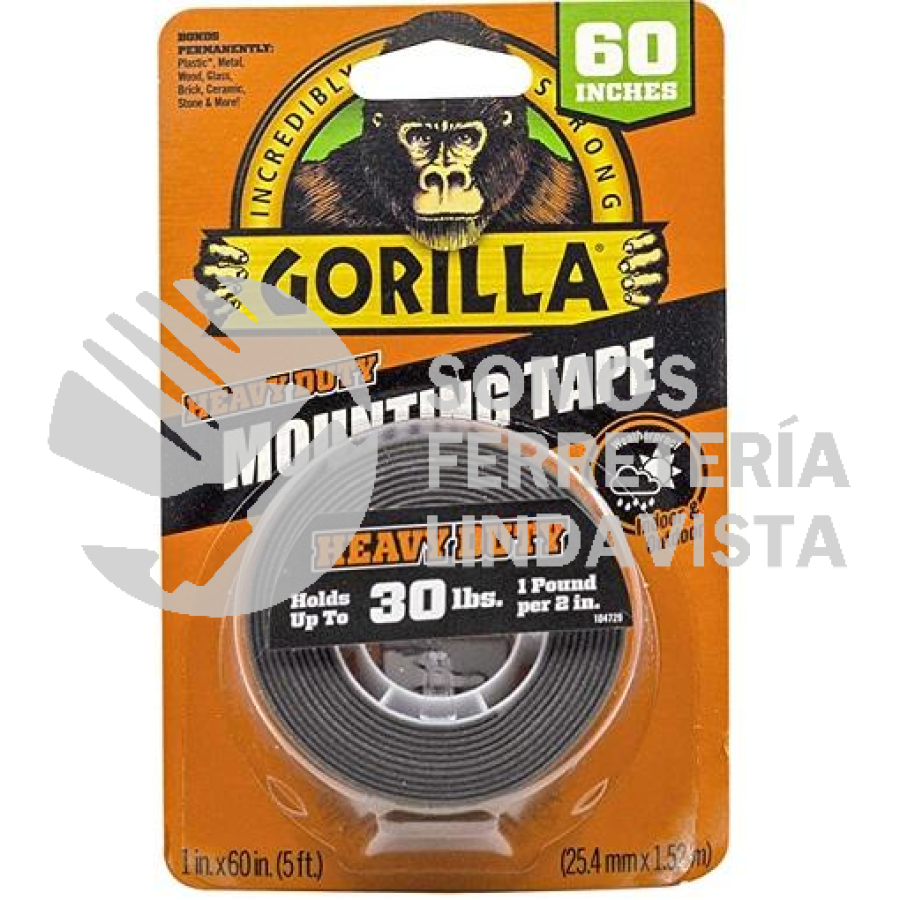 104729 CINTA DOBLE CARA 60" RESISTE 30LBS 25.4MM X 1.52M GORILLA