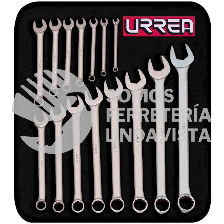 -Juego de 15 llaves combinadas satinadas métricas Urrea
