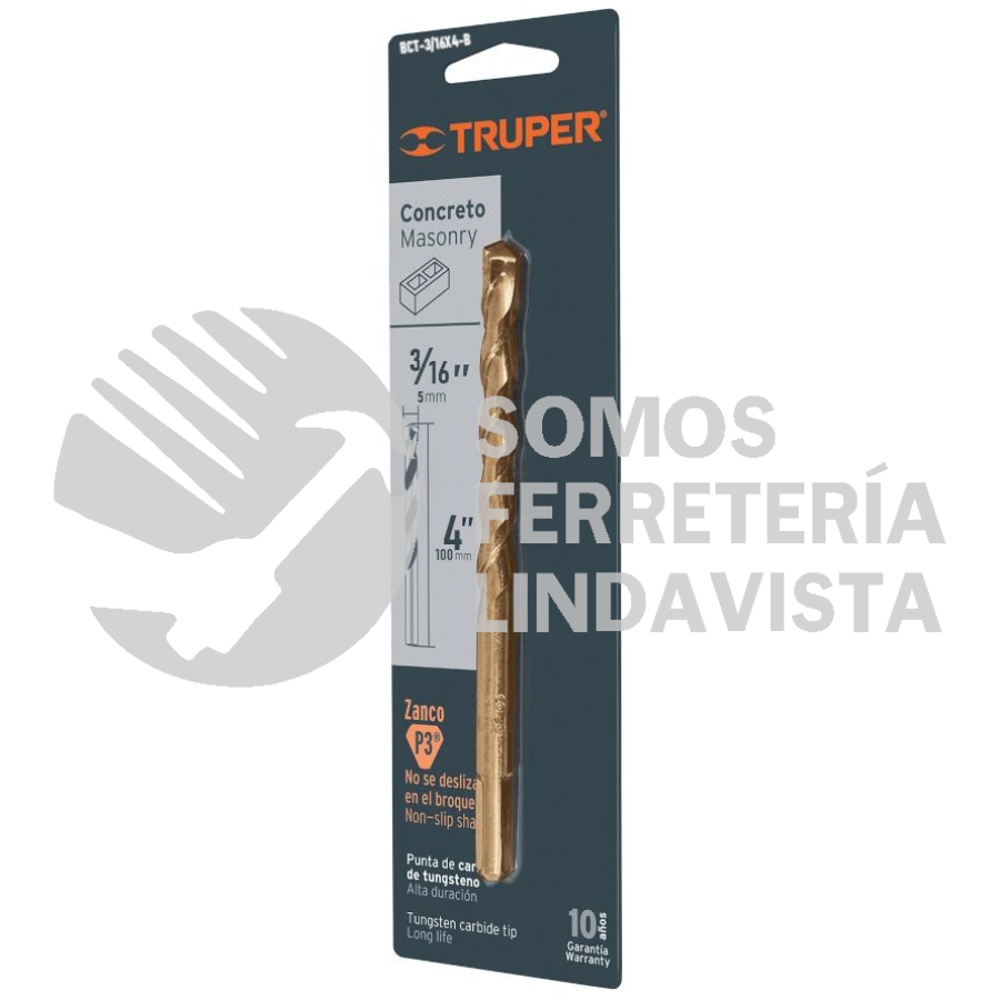 12752 BCT-3/16X4-B BROCA PARA CONCRETO DE 3/16 X 4" EN BLISTER TRUPER