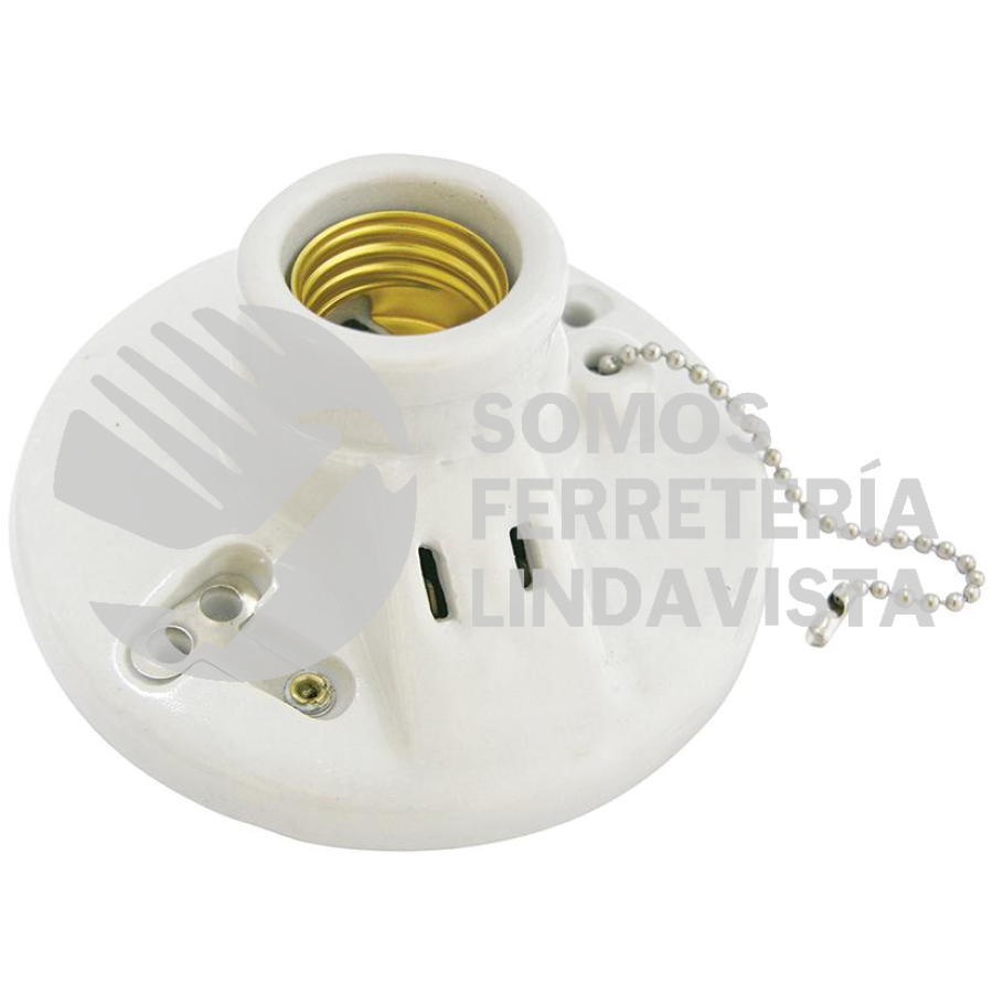 -Portalámpara porcelana techo, cadena y ladrón4.5"127V Surtek