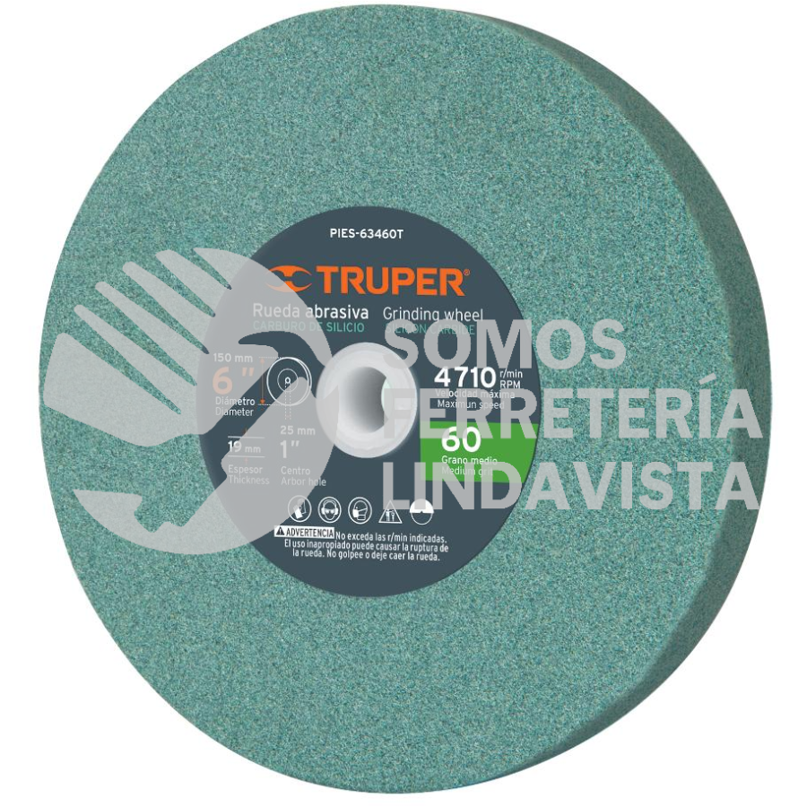 16405 PIES-63460T PIEDRA PARA ESMERIL 6 X 3/4" CARBURO DE SILICIO GRANO 60 TRUPER