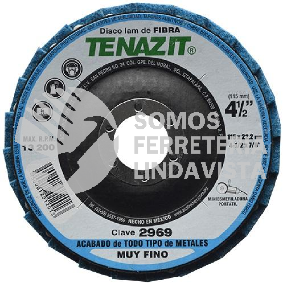 2969 DISCO LAMINADO DE FIBRA COLOR AZUL GRANO FINO (4-1/2"X7/8") TENAZIT