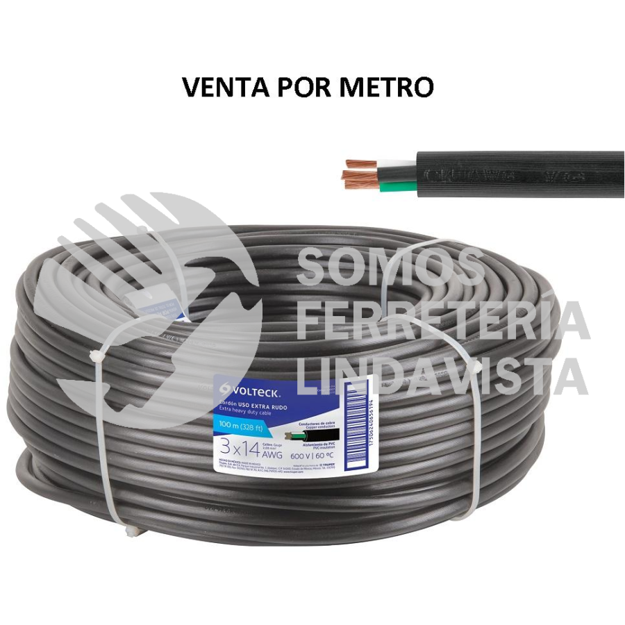 40007 CAUR-314 METRO DE CABLE USO EXTRA RUDO 3 X 14 AWG EN ROLLO DE 100 M VOLTECK