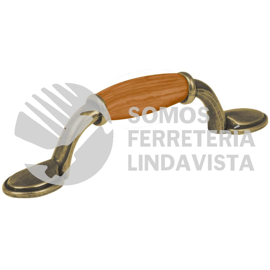 43831 JAL-0631 JALADERA DE 76 MM LATON ANTIGUO CON INSERTO TIPO MADERA HERMEX