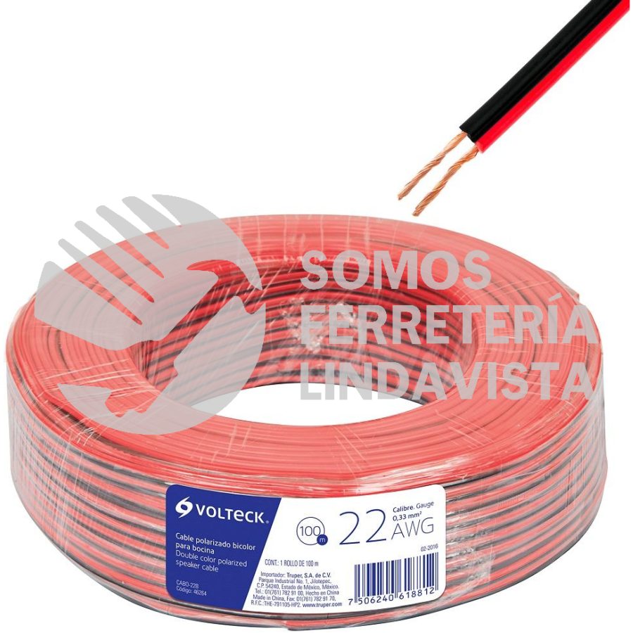 46264 CABO-22B ROLLO DE 100 M DE CABLE POLARIZADO BICOLOR P/BOCINA 22 AWG VOLTECK