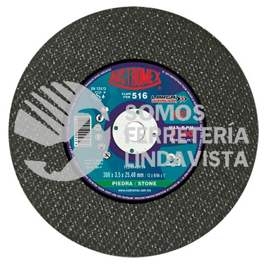 516 DISCO PARA CORTE DE PIEDRA LARGA DURACION TIPO 41 GRANO 24 (12"X9/64"X1") AUSTROMEX