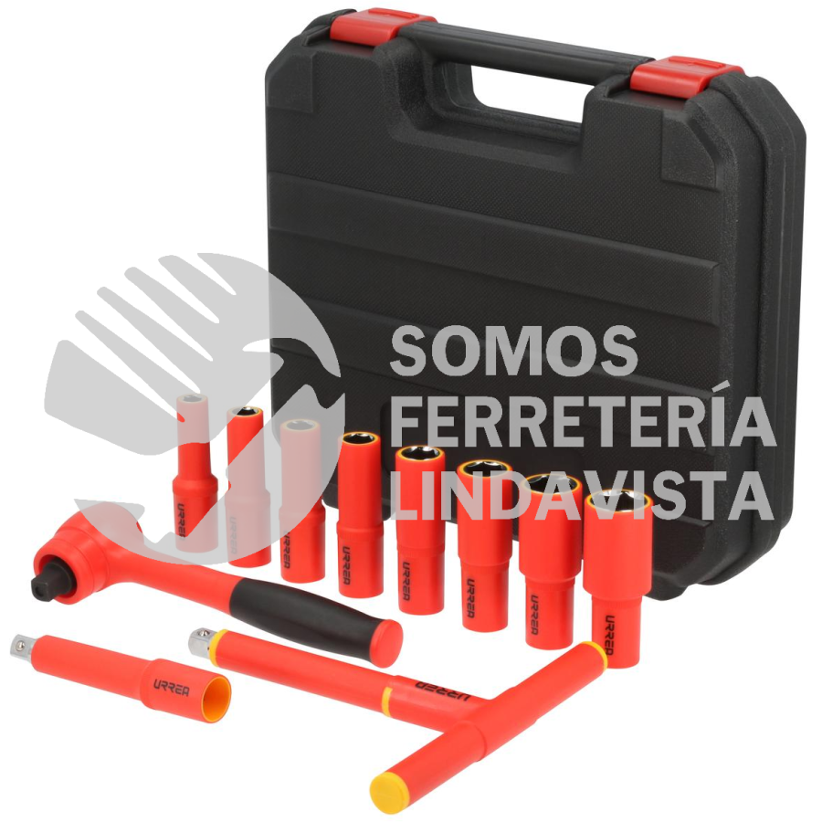 8 dados métricos 10mm,12mm,13mm,14mm,17mm,19mm,22mm,24mm, 1 matraca reversible 1/2", 1 extensión 1/2"x 5-5/8", 1 mango T de 1/2".