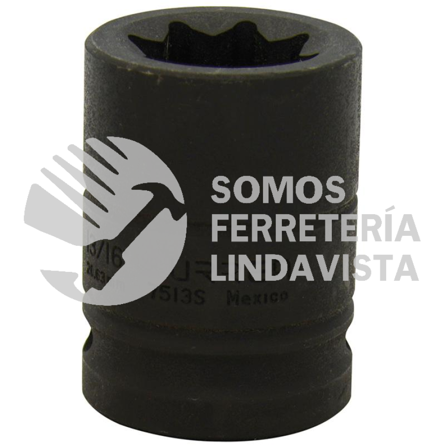 -Dado de impacto cuadro 3/4" 8 puntas medida 13/16" geometría lobular super-drive, acabado fosfatado
