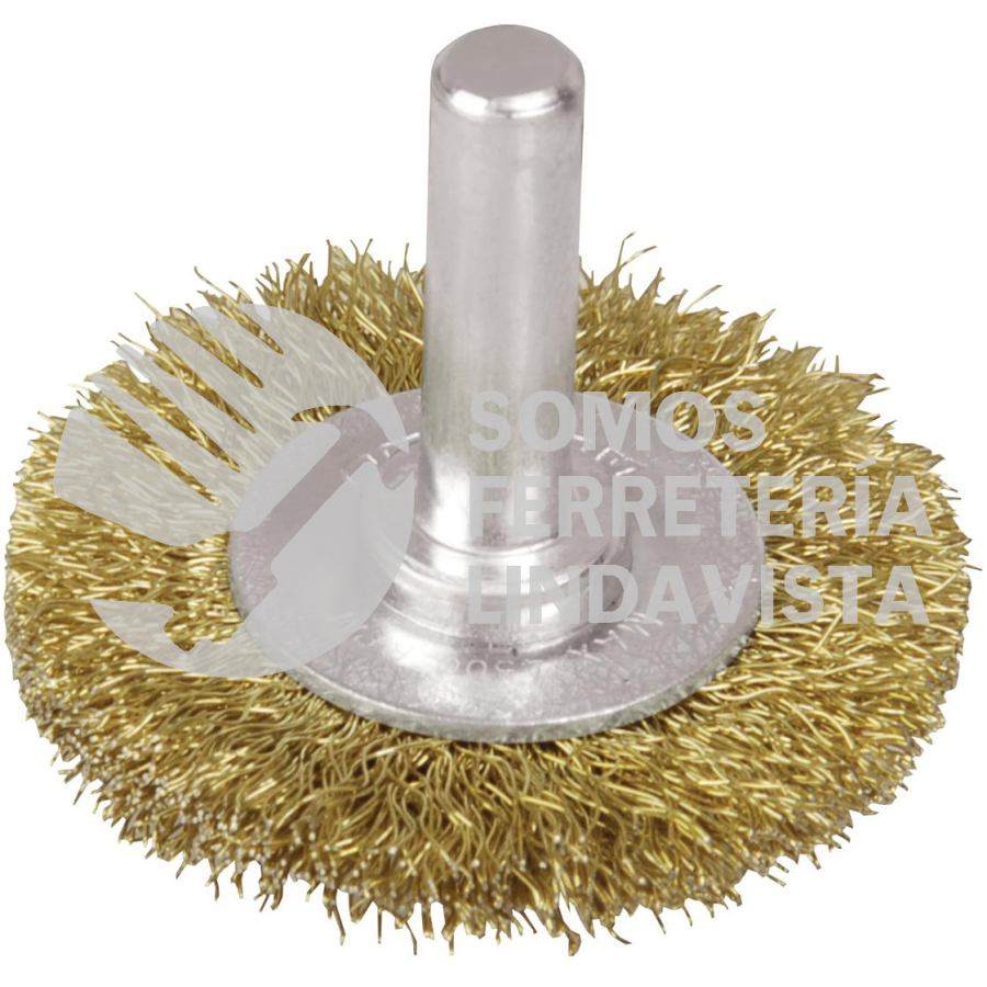 -Tipo de carda: Circular. Tipo de alambre: Ondulado. Diámetro de la carda: 2". Velocidad máxima: 4500. -Diámetro de la carda: 2". Velocidad máxima: 4500. -Calibre del alambre 0.30 mm. Zanco 1/4". -Se utilizan para desbarbar (remoción de rebabas secundarias que se producen al fresar, lijar, tornear y taladrar).