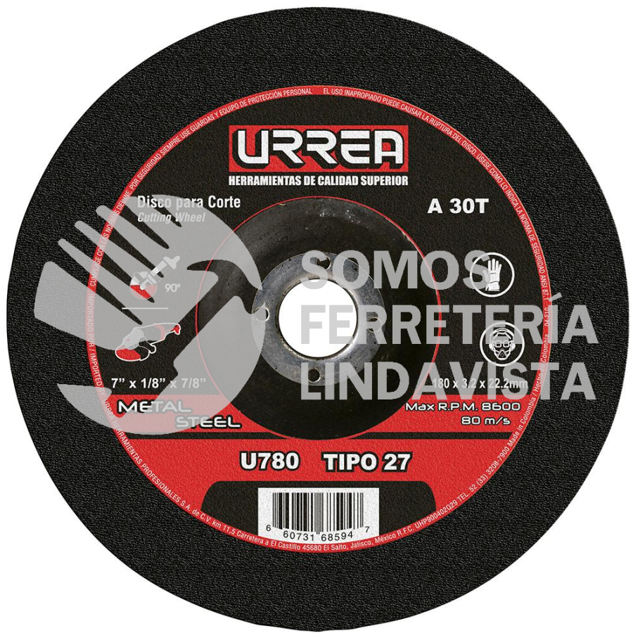 U780 DISCO ABRASIVO TIPO 27 PARA METAL 7" X 1/8" URREA